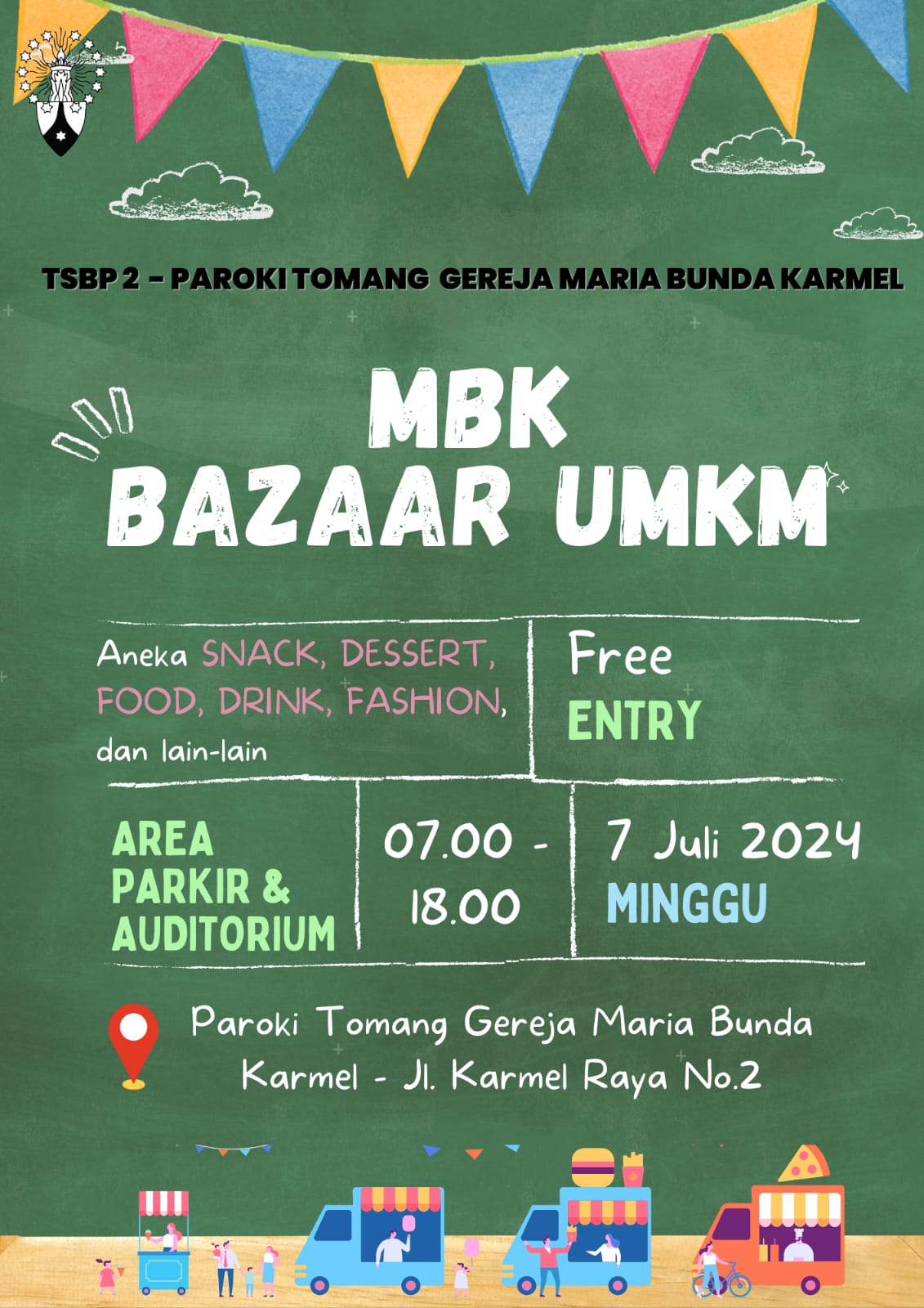 MBK Bazaar ini akan dimeriahkan oleh UMKM umat Paroki Tomang Gereja Maria Bunda Karmel.