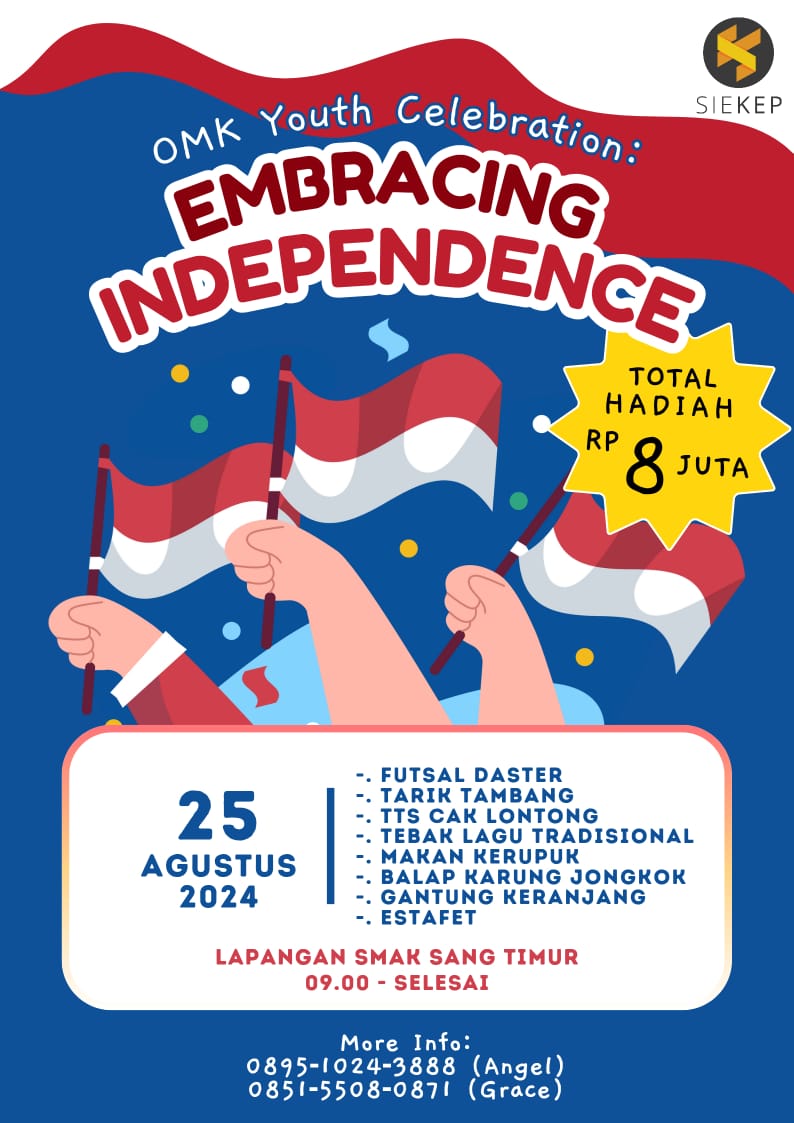 Sie Kepepemudaan Gereja MBK mengajak teman-teman OMK untuk hadir dan berpartisipasi dalam perayaan HUT RI ke-79 “Embracing Independence” yang akan diselenggarakan pada :