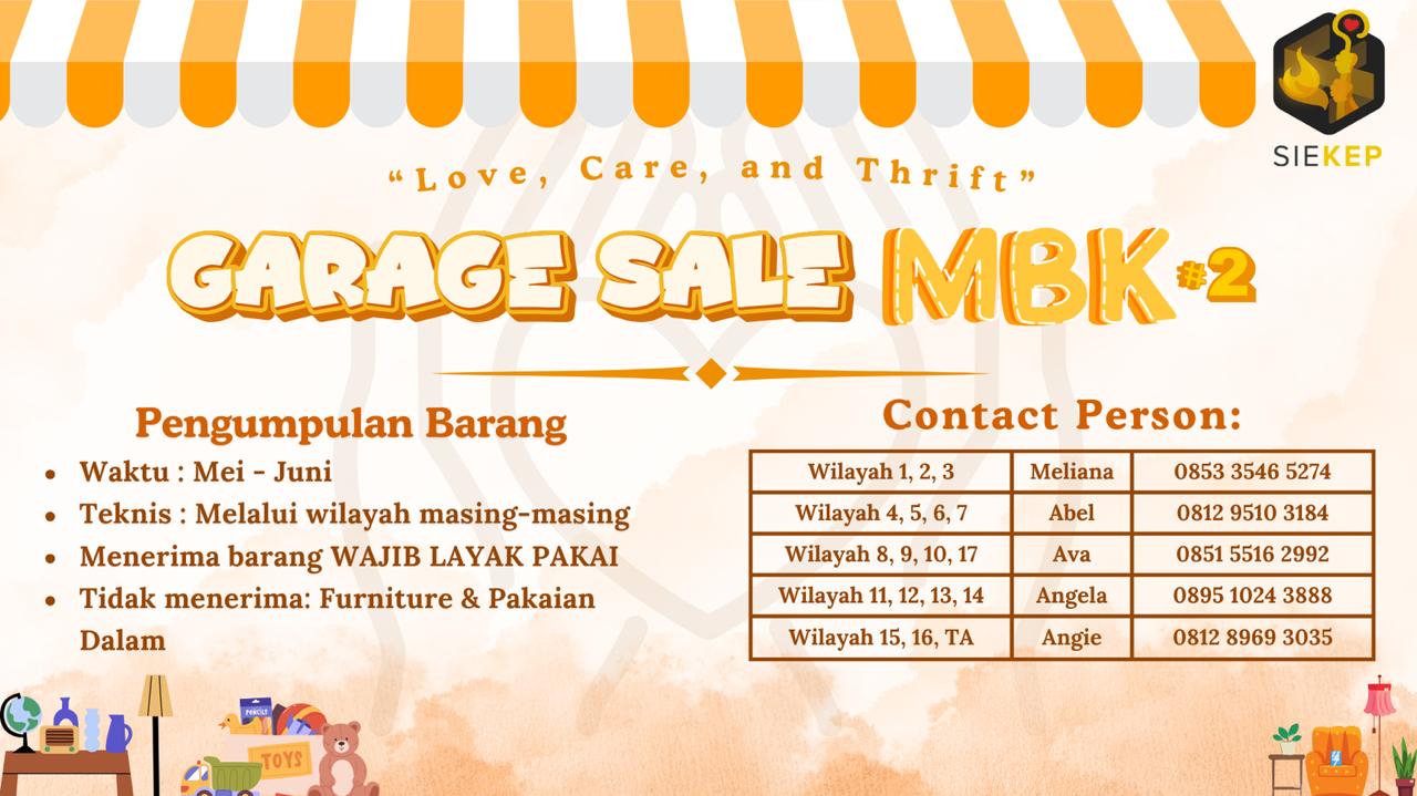 Sie Kepemudaan Gereja MBK kembali mengadakan Garage Sale #2; Love, Care, and Thrift yang merupakan rangkaian kegiatan Tahun Kepemudaan.