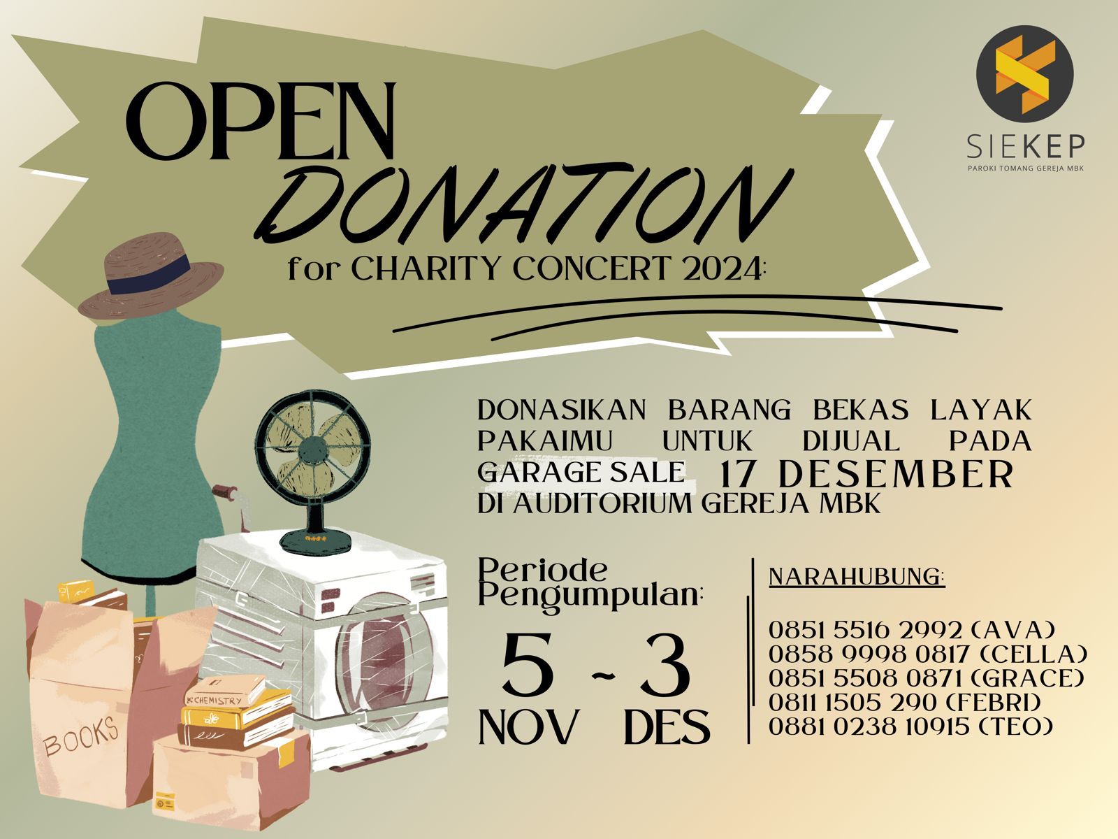 Kami mewakili panitia Charity Concert 2024 sekaligus mewakili Seksi Kepemudaan, ingin menginformasikan kegiatan terdekat kami yaitu Garage Sale pada hari Minggu, 17 Desember 2023