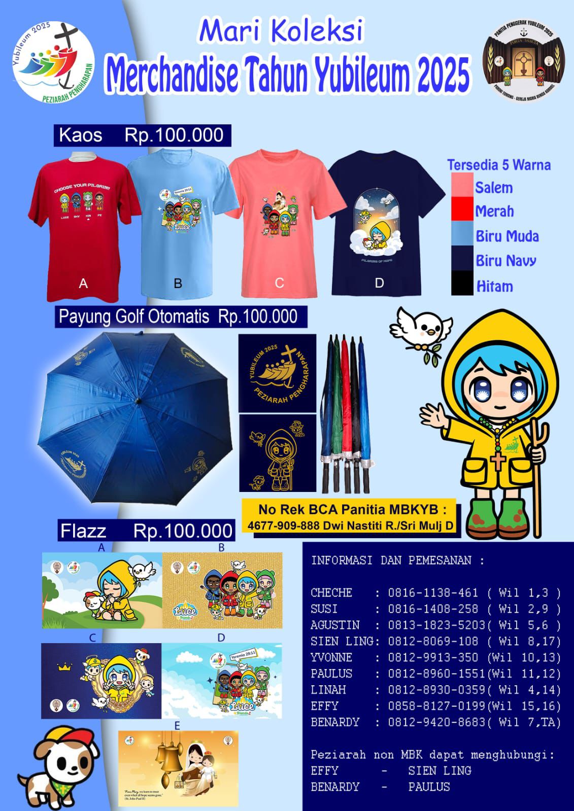 Memasuki Tahun Yubileum 2025, Panitia menyediakan berbagai merchandise menarik bergambar maskot Luce & Friends.