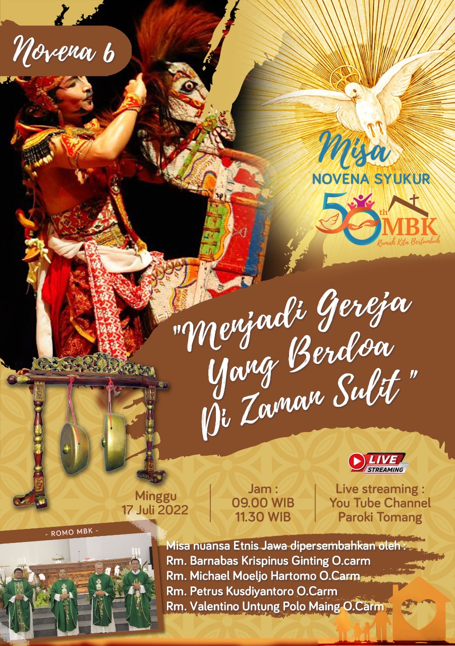 Misa Novena Keenam dengan tema “MENJADI GEREJA YANG BERDOA DI ZAMAN SULIT” yang akan diselenggarakan pada :