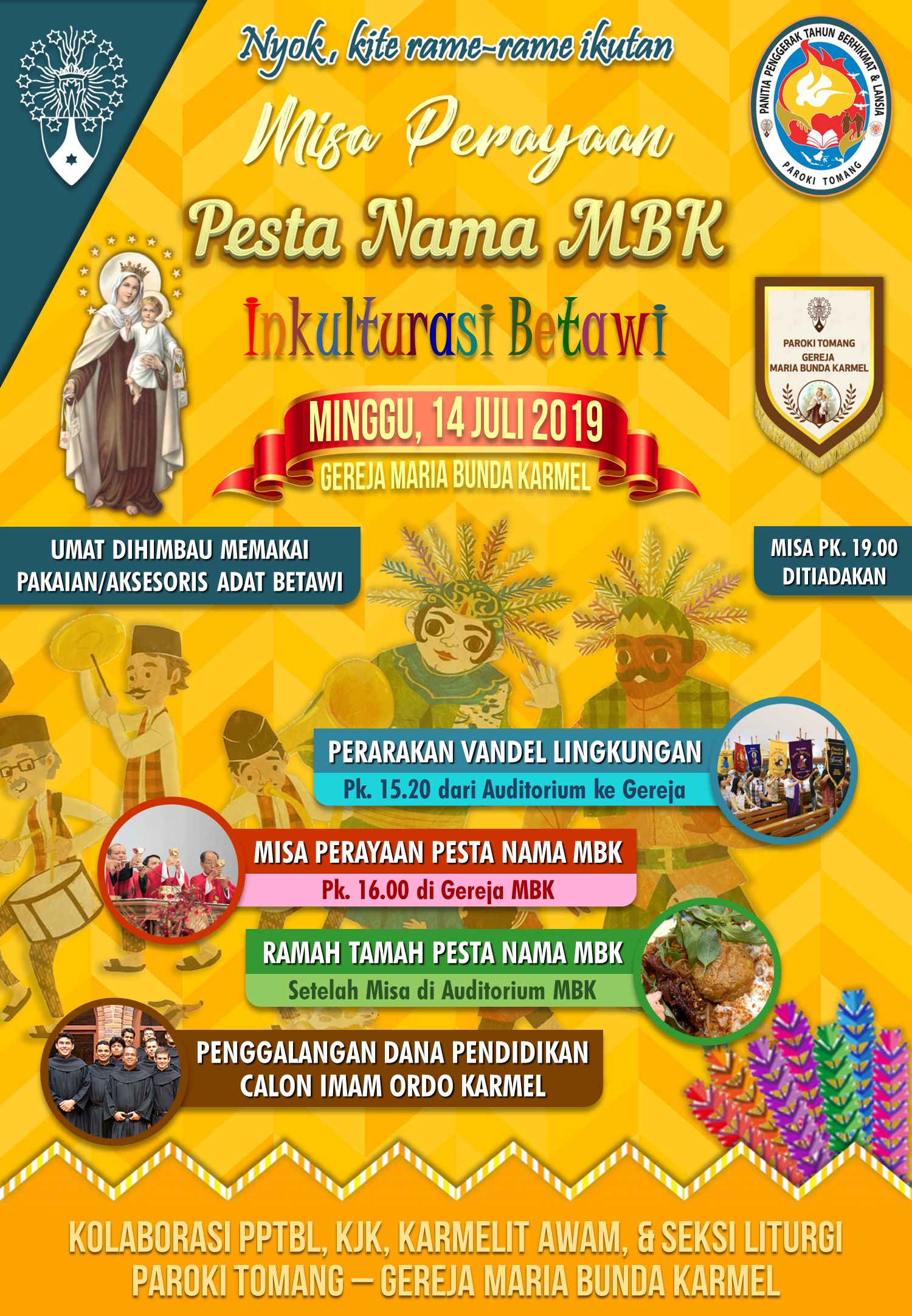 Misa Perayaan Pesta Nama MBK akan diadakan dengan Inkulturasi Betawi pada hari Minggu, tgl 14 Juli 2019.
