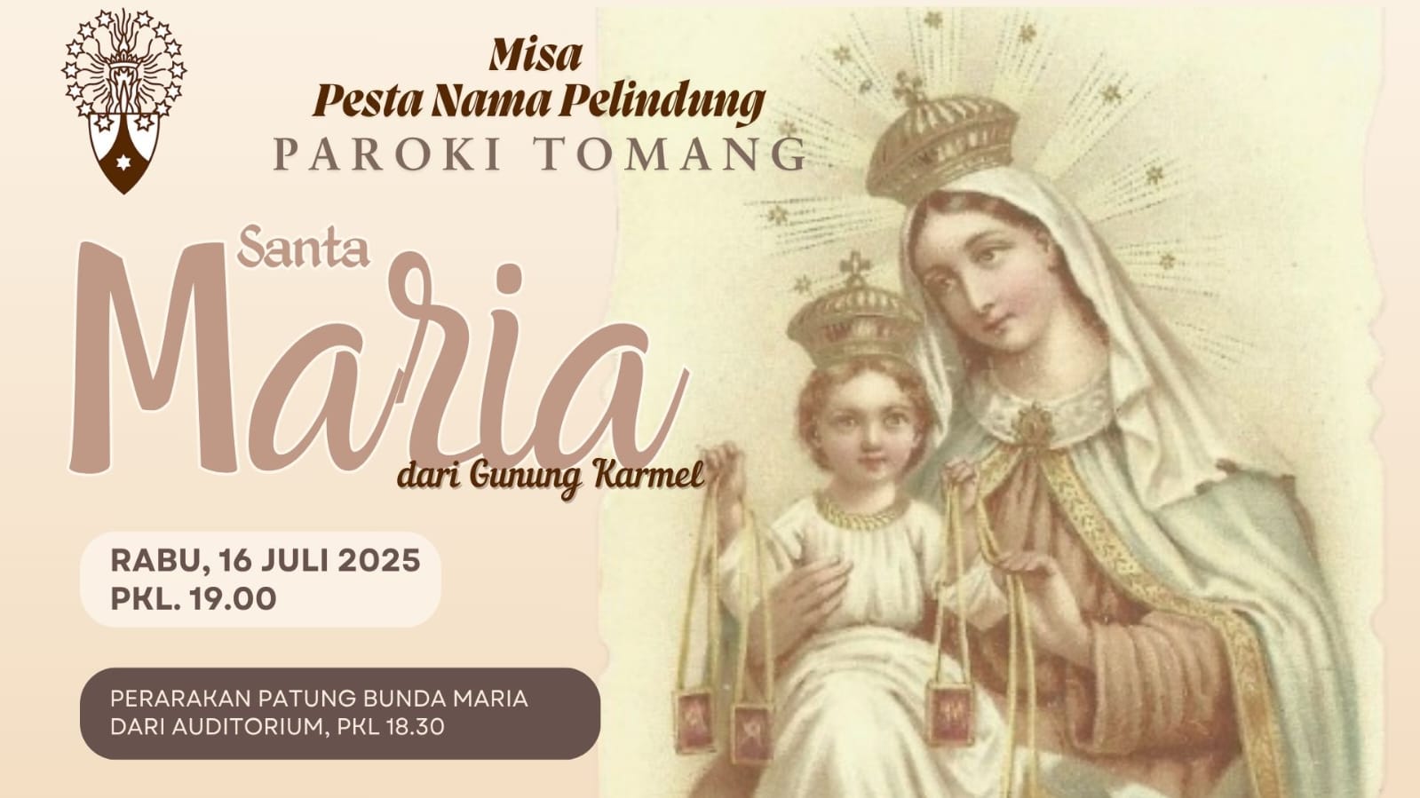 Kami mengundang Romo, Suster, Ibu, Bapak dan rekan muda seluruh umat MBK untuk bersama-sama merayakan misa syukur Pesta Nama pelindung Paroki kita, Santa Maria dari Gunung Karmel, pada: