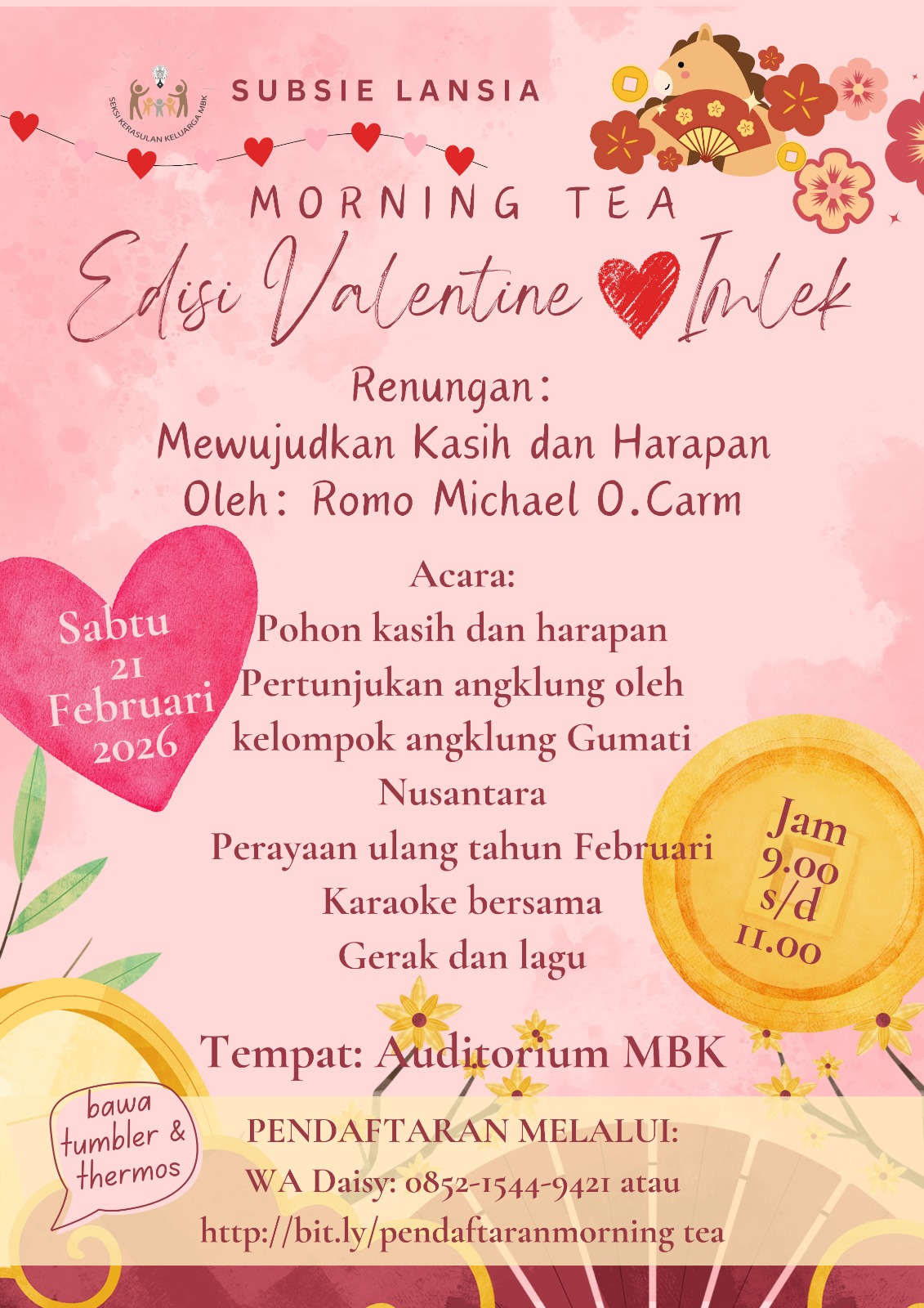 Mengundang Bapak/Ibu untuk hadir dalam acara Morning Tea untuk lansia ( atau min 55 thn) pada