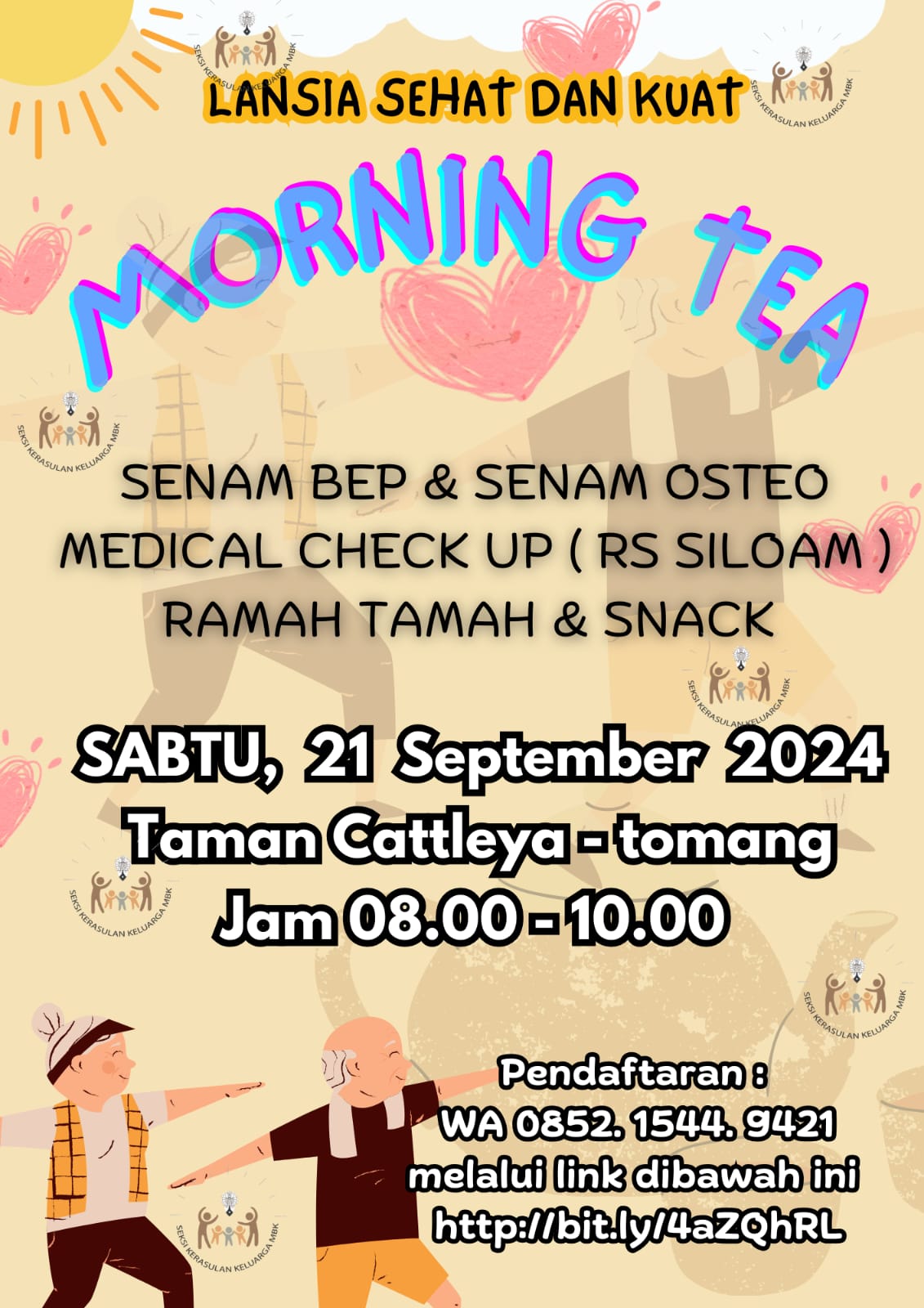 Mengundang Bapak/Ibu untuk hadir dalam acara Morning Tea untuk lansia ( atau min 55 thn) pada