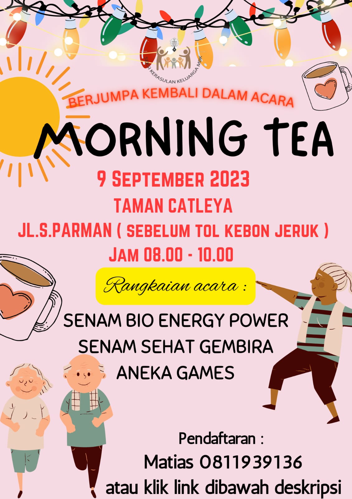 Mengundang Bapak/Ibu untuk hadir dalam acara Morning Tea untuk lansia ( atau min 55 thn) pada