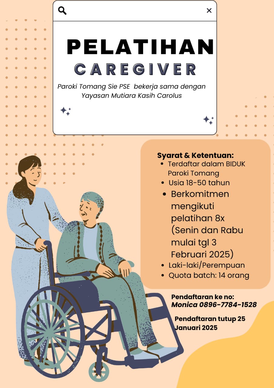 Seksi PSE Paroki Tomang bekerja sama dengan Yayasan Mutiara Kasih Carolus mengadakan Pelatihan Caregiver.