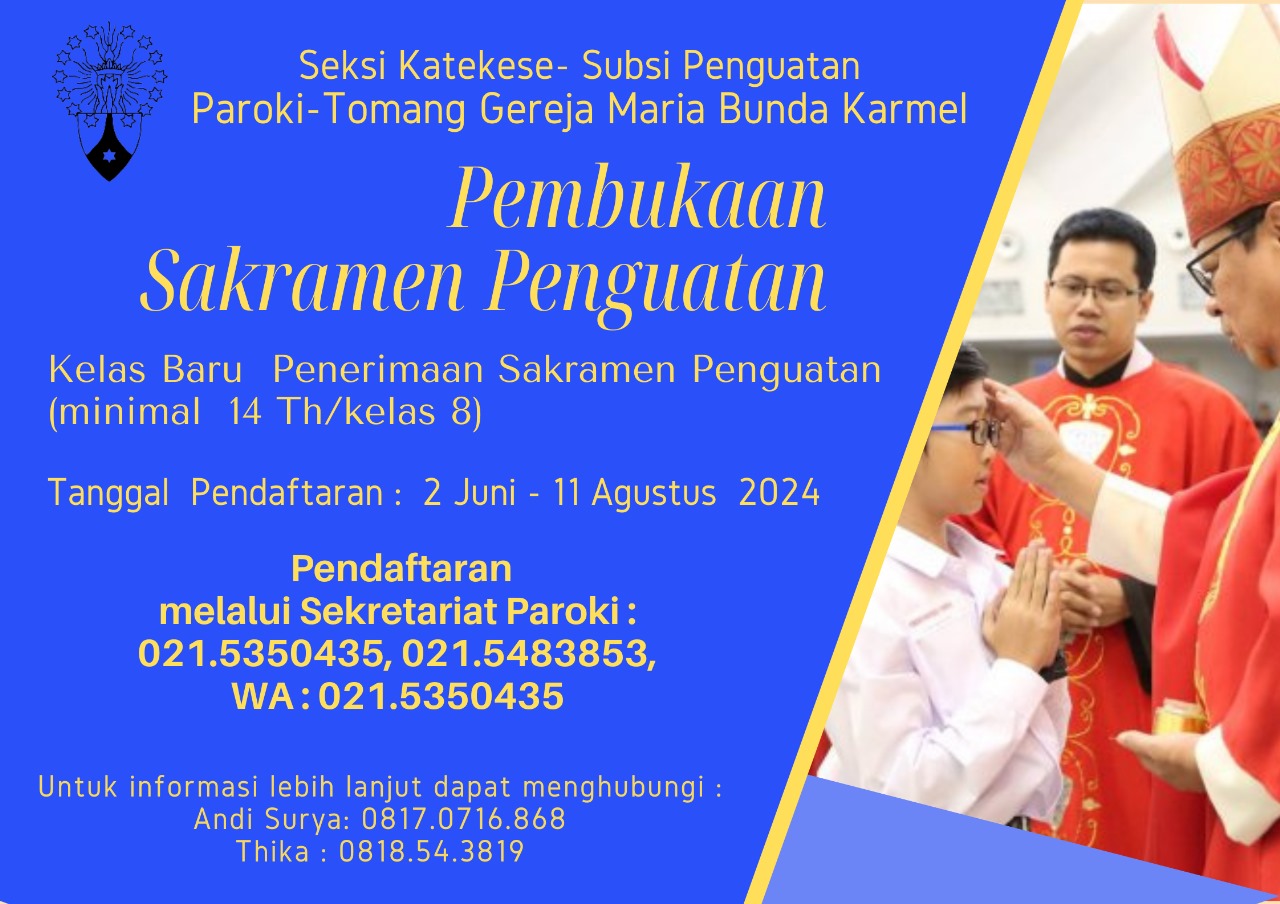 Dengan ini diinformasikan Pembukaan Pendaftaran Penerimaan Sakramen Krisma
