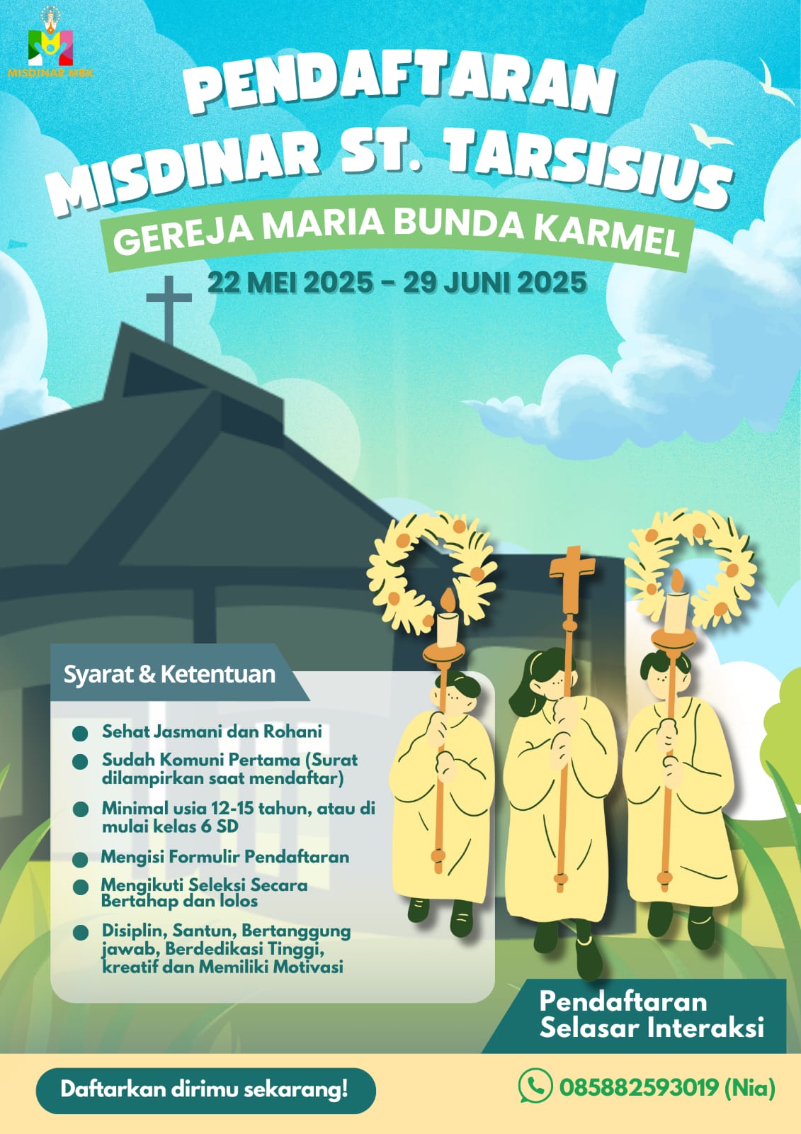 โ Subsie Misdinar Paroki Tomang kembali mengundang teman-teman yang ingin melayani Tuhan sebagai Misdinar (Putra/Putri Altar) untuk bergabung bersama kami dalam keluarga pelayanan yang penuh suka cita!