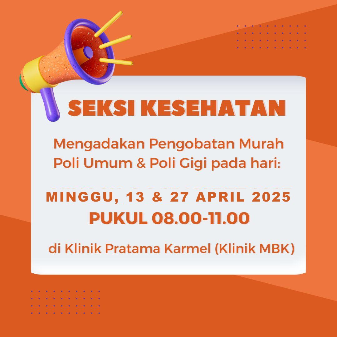 Seksi Kesehatan mengadakan Pengobatan Murah (Poli Umum & Poli Gigi) yang akan diadakan pada: