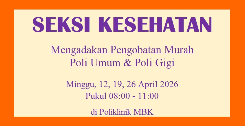 Seksi Kesehatan mengadakan Pengobatan Murah (Poli Umum & Poli Gigi) yang akan diadakan pada: