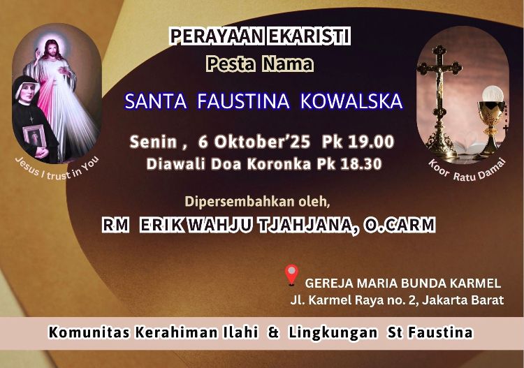 Mengundang Bp/Ibu/Sdr/i untuk hadir dalam “Perayaan Ekaristi Pesta Nama St Faustina Kowalska” yg diadakan pada :