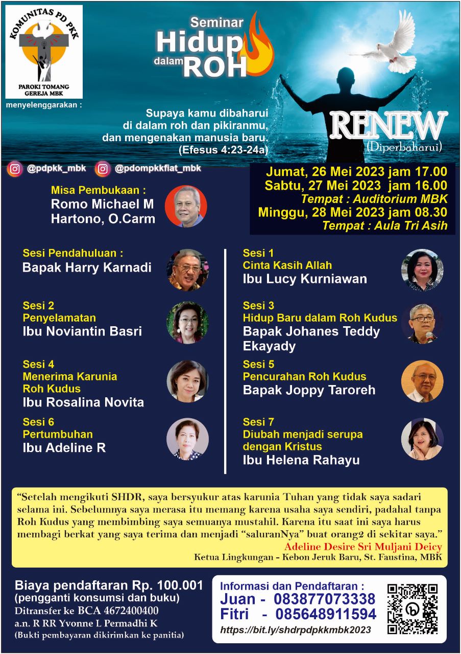 Mari DIPERBAHARUI dan rasakan pencurahan Roh Kudus pada hari Pentakosta melalui Seminar Hidup Dalam Roh bersama Komunitas Persekutuan Doa Pembaharuan Karismatik Katolik Paroki Tomang