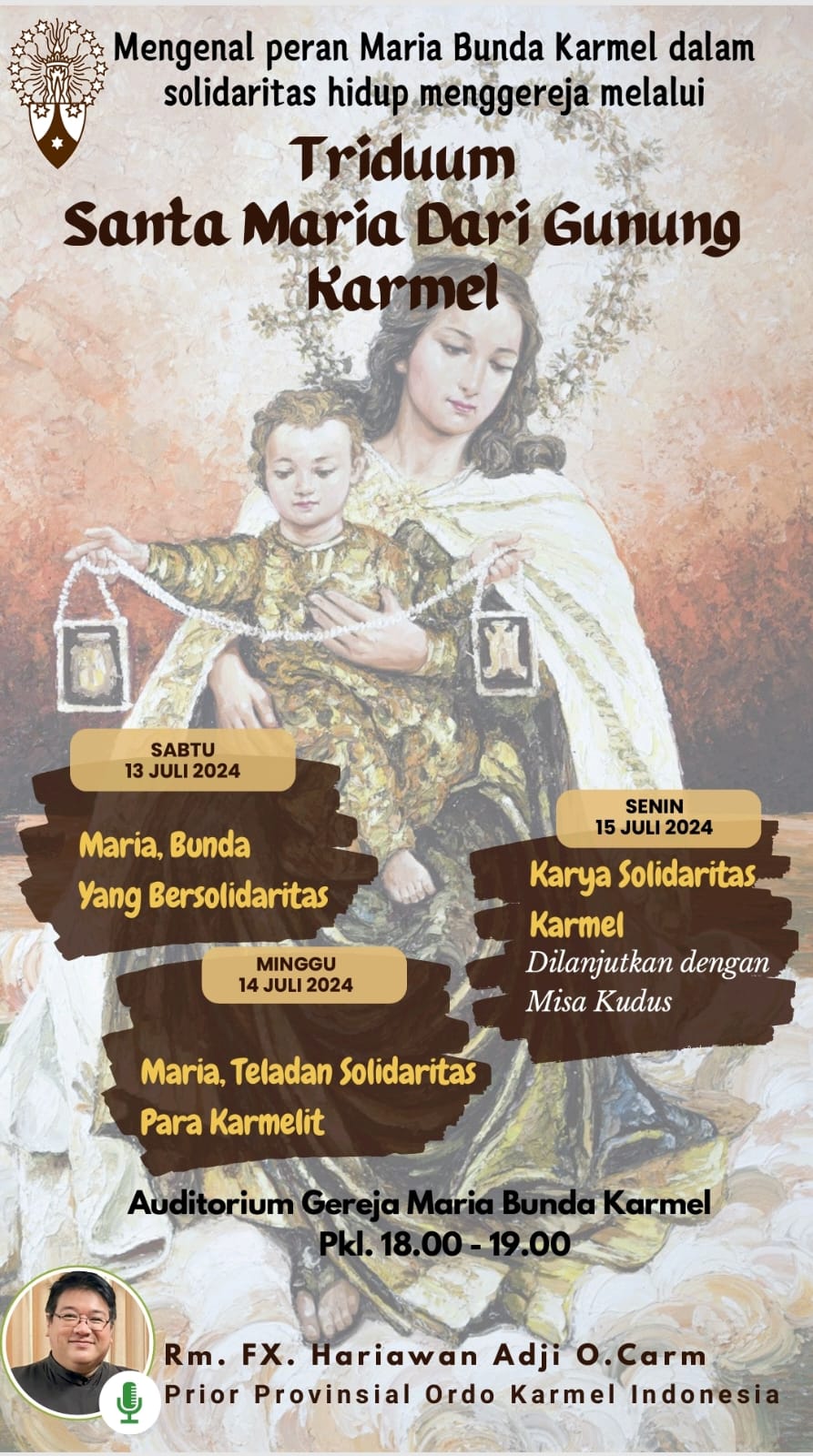 Mengundang seluruh umat Paroki Untuk lebih mengenal St. Perawan Maria dari Gunung Karmel dengan mengikuti Rangkaian Pengajaran Triduum Pesta Nama Pelindung Paroki Tomang