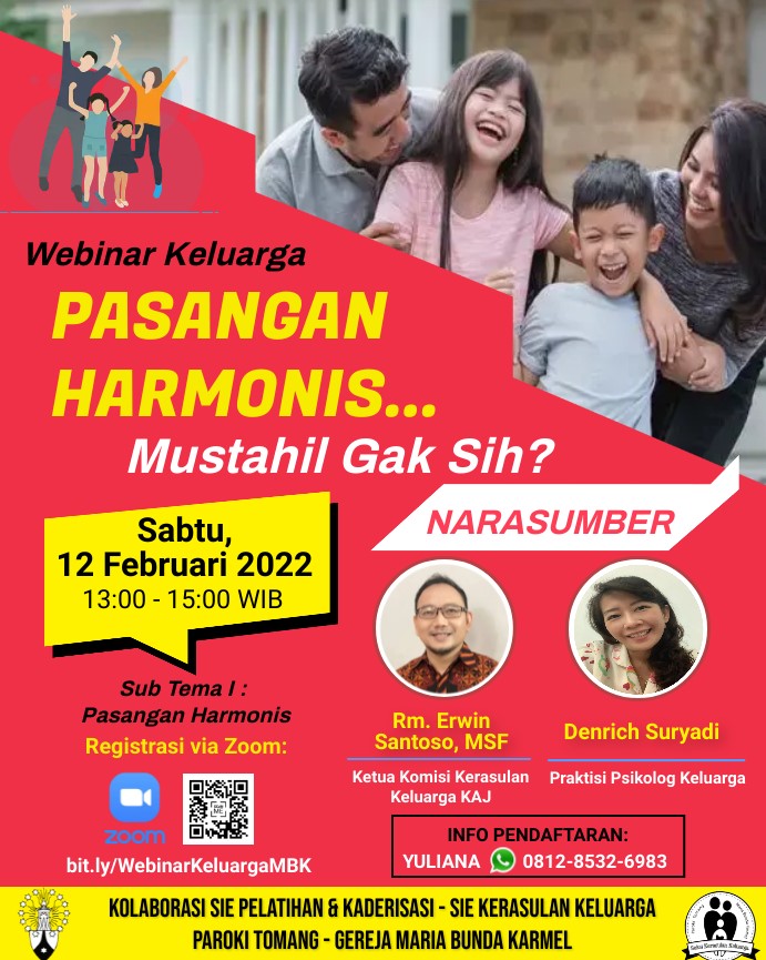 Yukkk para keluarga muda kita temukan jawabannya, segera daftar dan ikuti Webinar Keluarga di Paroki Tomang – Gereja Maria Bunda Karmel dengan tema:
