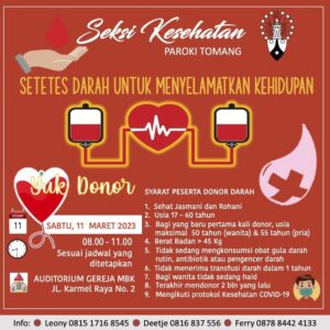 Seksi Kerasulan Keluarga Paroki Tomang – Gereja Maria Bunda Karmel, mengundang para PASUTRI yang merayakan Ulang Tahun Perkawinan di bulan Februari 2023 untuk mengikuti Perayaan Ekaristi dengan intensi HUP pada